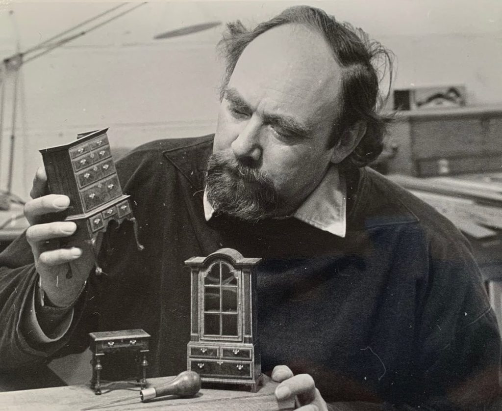 One of the giants of the miniature world, John Hodgson was referred to by the author Jean Nisbett as ‘The Master’. Inspired by a love of antique furniture, he started out by making miniature Chippendale-style pieces, especially chairs, which were always a particular interest for him. Now his catalogue includes all sorts of wonderful pieces, from console tables and chaises longues to torcheres, wall brackets and delicate picture frames.